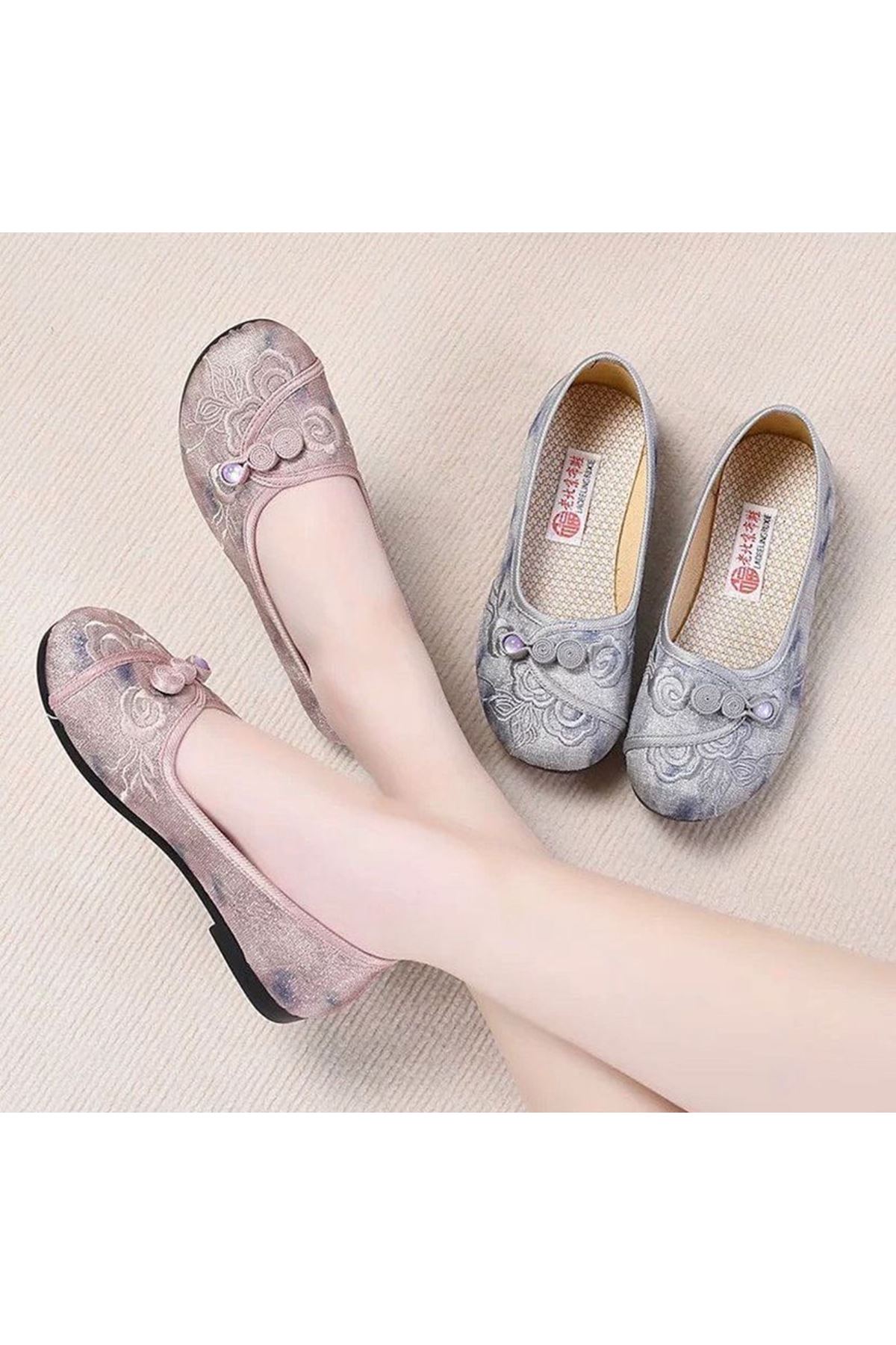 حذاء مسطح مطرز للنساء ، الراحة أمي المتسكعون مع زر التقليدية ، السيدات حذاء النسيج العرقية ، الربيع والخريف