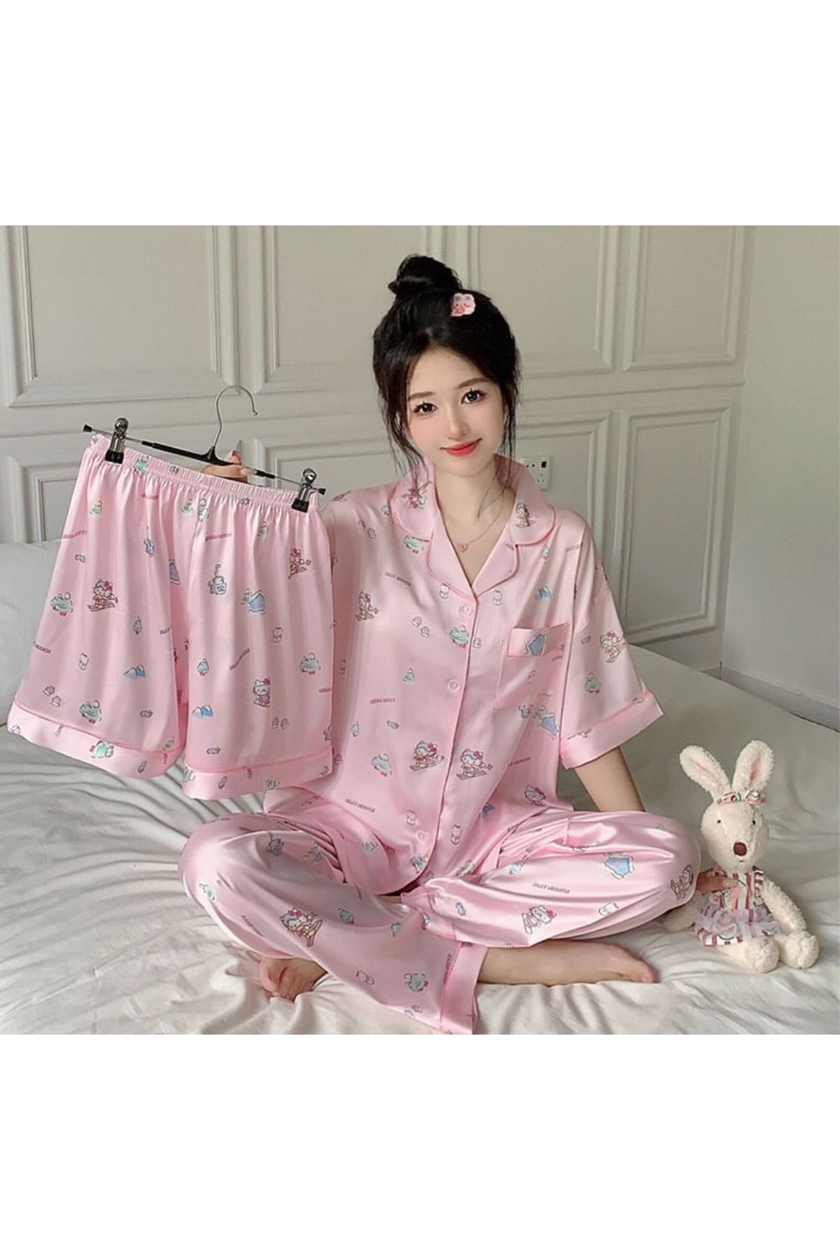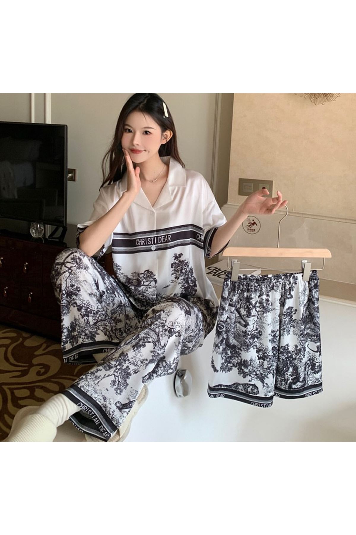 طقم بيجامات نسائي جديد لفصل الربيع والصيف مكون من 3 قطع، ملابس نوم، شورت بأكمام قصيرة، ملابس نوم فضفاضة، ملابس منزلية
