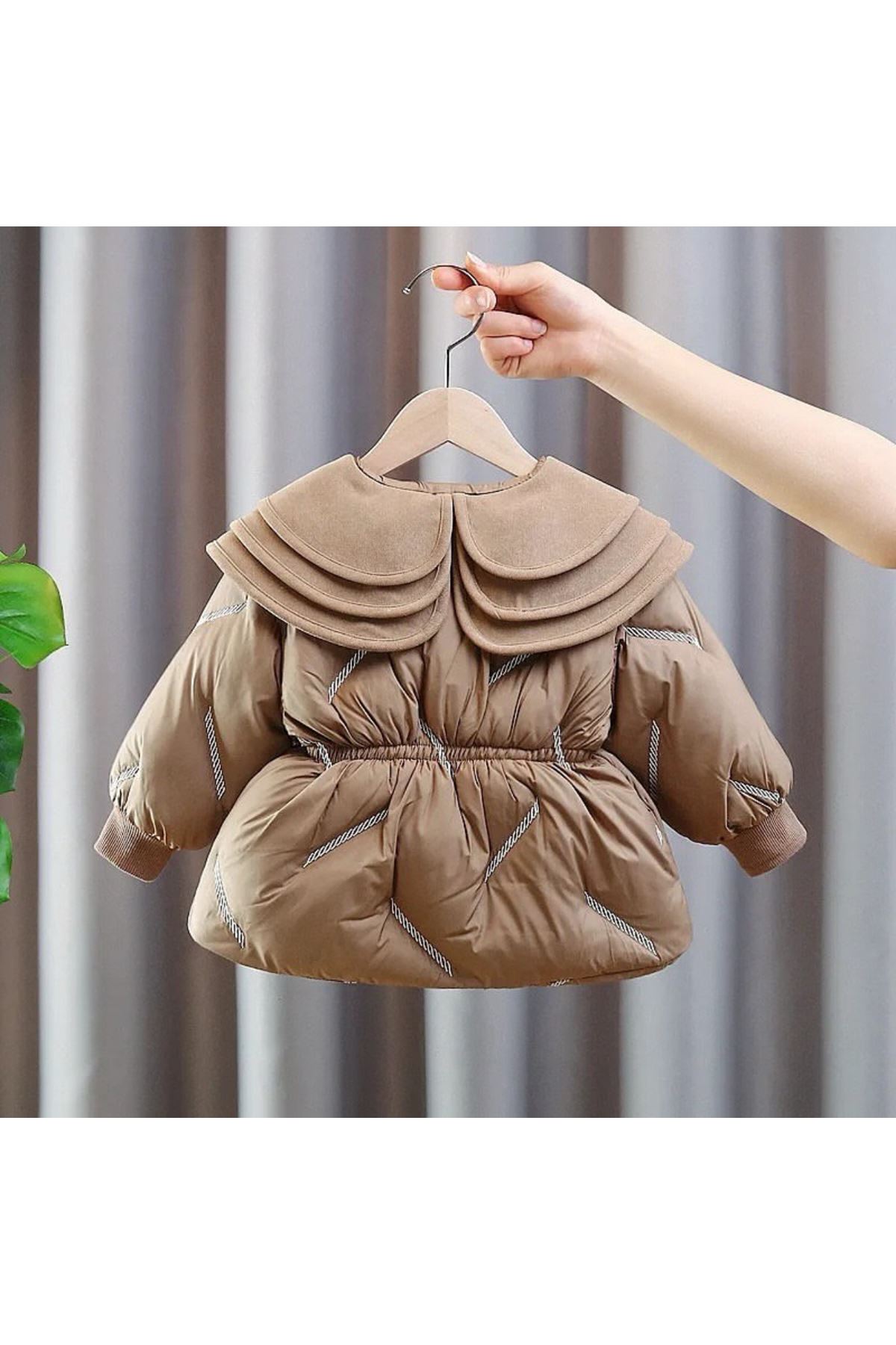 معطف دافئ للأطفال الصغار ملابس خارجية بياقة كبيرة من الصوف السميك ملابس للفتيات الصغيرات - الفتيات الصغيرات