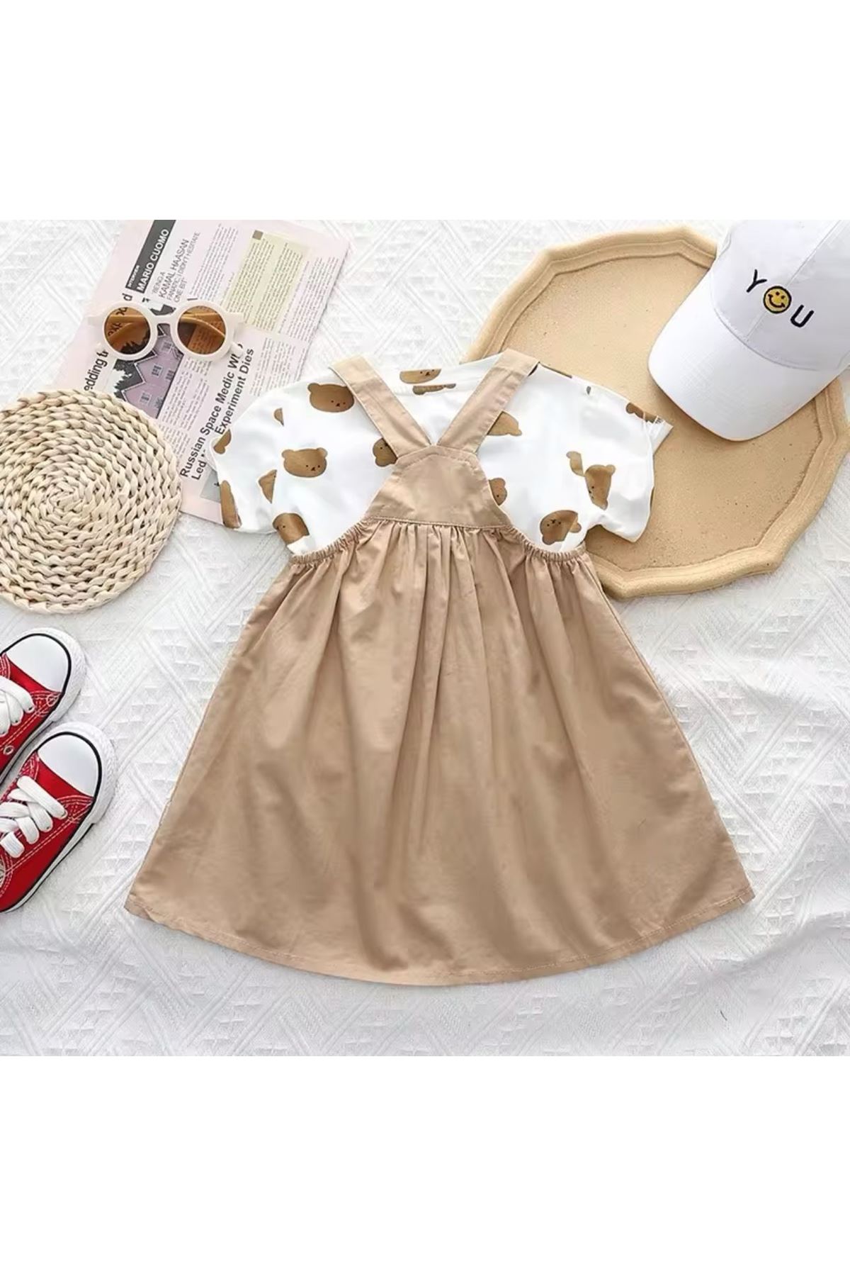 جديد الأطفال الصيف الاطفال شقيق شقيقة طفل الفتيات الفتيان الدب الفتاة حزام تنورة القطن تي شيرت مريلة السراويل 2 قطعة/مجموعة ملابس غير رسمية