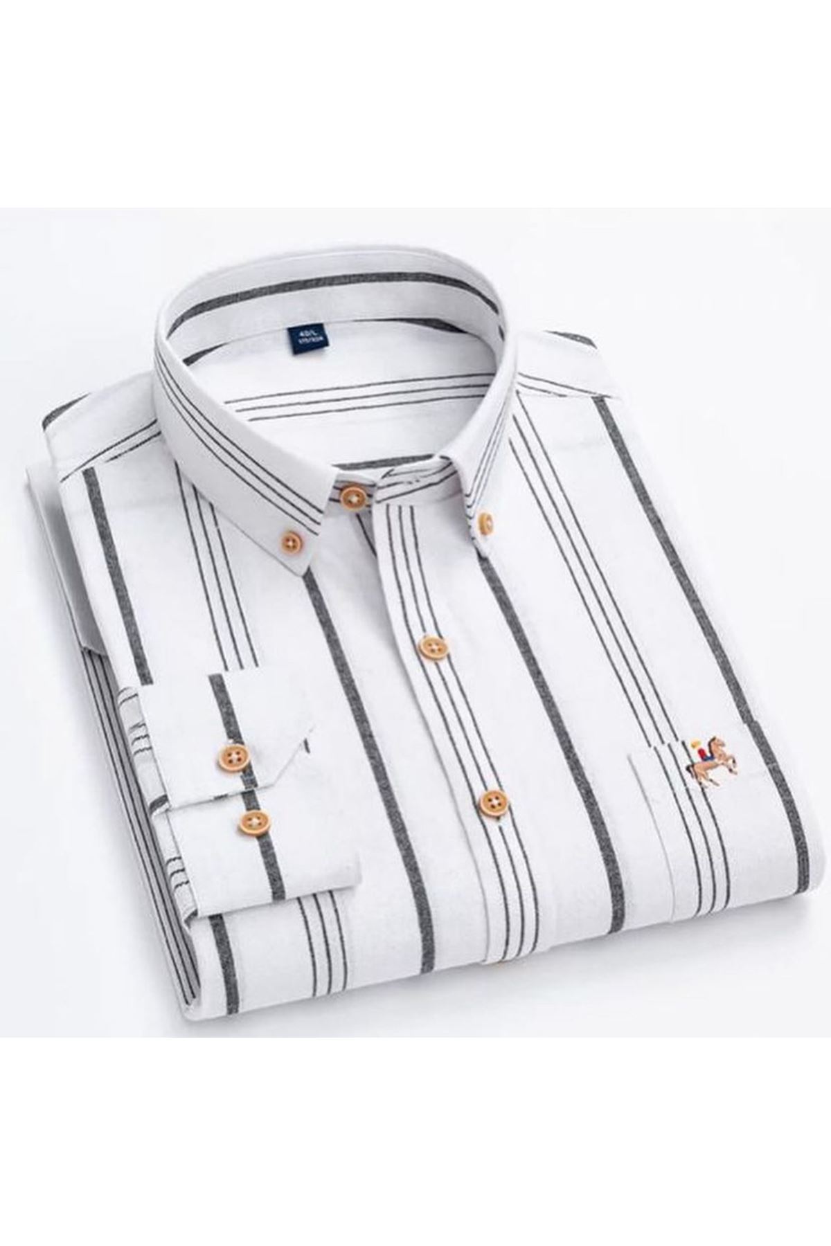 جديد القطن الخالص أكسفورد النسيج قميص رجالي مع تسمية الحصان ضئيلة ومريحة طويلة الأكمام منقوشة مخطط ملابس الرجال عادية