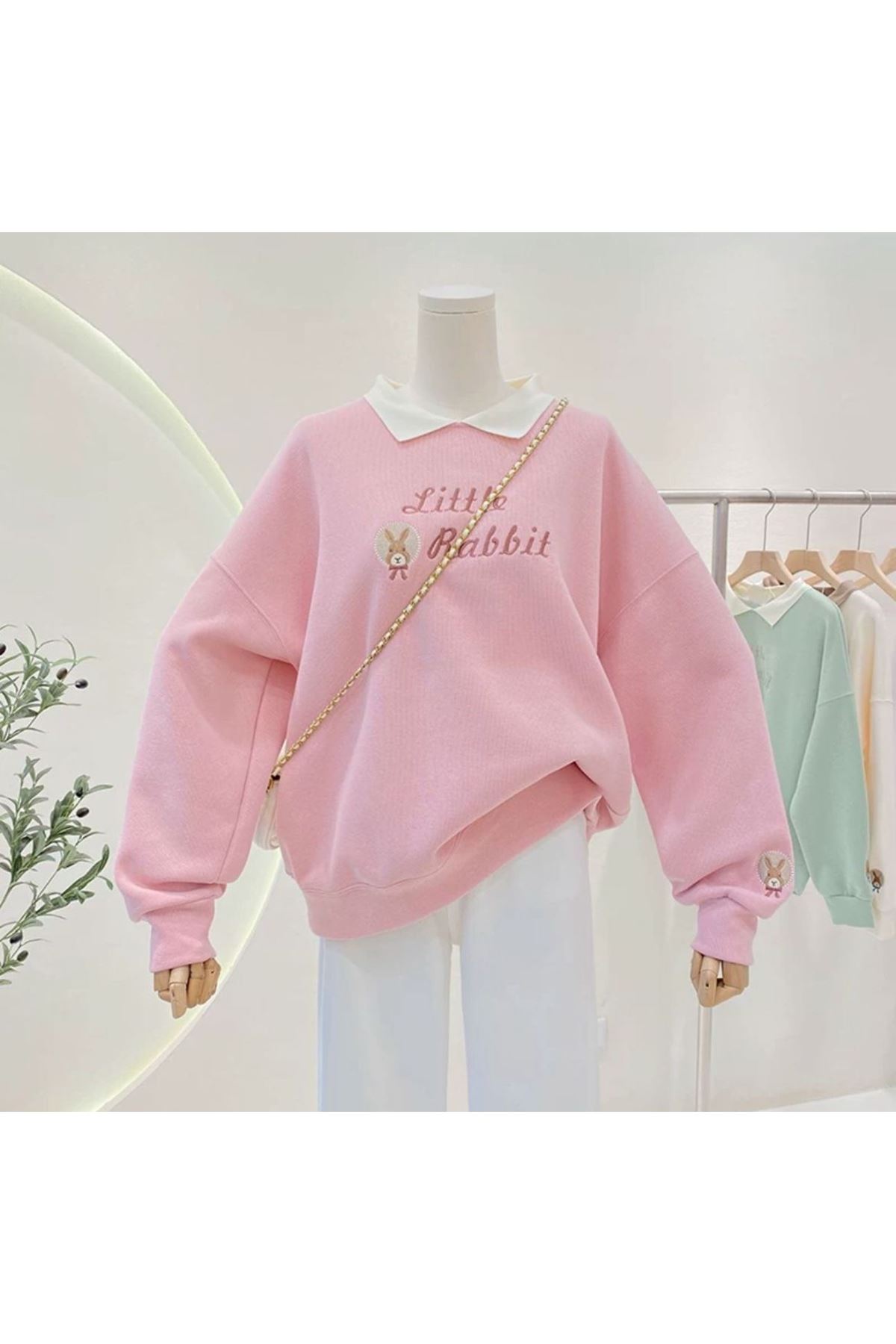 سويت شيرت كوري فضفاض ومطرز للنساء لربيع وخريف وياقة عصرية وقميص علوي للطالبات غير رسمي جديد